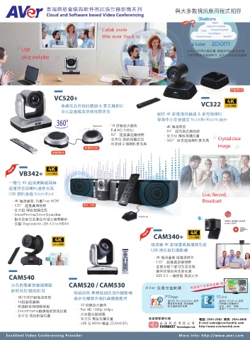 出色的高畫質會議體驗 CAM520 / CAM530 輕鬆進行多畫面直播/錄影